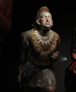 Among a dazzling display of ship figureheads was the depiction of a Seminole Indian warrior who did not accurately represent any actual indigenous person, but his bared chest and legs, bear-claw necklace, and the ax in his hand perpetuated the false idea that Native Americans were more savage than Europeans, a non-fact we locals know about especially from the local history of the Pequot War 1636-7, a lowlight of which was a massacre of mostly 500 Native women and children in the dead of night by John Mason’s crew. The Pequot War was a 3-year war (actually a series of massacres and not a war at all), instigated by the Puritans to seize the tribes’ (Pequot/ Wunnashowatuckoogs/Narragansett and other local tribes’ traditional land. As a former runner, I knew to spit on Mason's statue every time I ran by it, one of the local traditions that finally got the statue removed.
